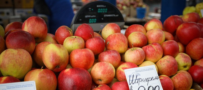 Выбор фруктов сейчас намного больше, чем ягод. Ассортимент одних только яблок удивляет. Здесь и «Ананасное», и «Голден», «Чемпион», и с десяток других – найдутся сорта и для пирогов, варенья, и чтобы просто полакомиться. Большинство стоят по 2 рубля за кило.
