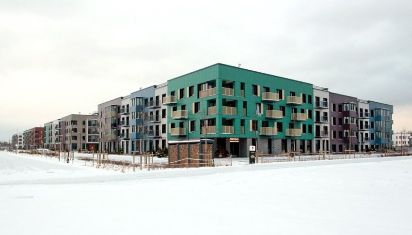 На Авиационной улице в Сестрорецке завершилось строительство первой очереди жилого микрорайона в «стиле» хаотизм. Под него отдали бывший лесопитомник близ аэродрома Горская.