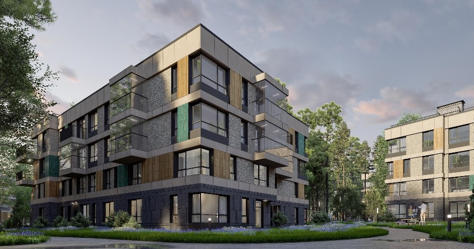 Теперь стали известны подробности. Проект, разработанный ООО «Архитектурное бюро „А.Лен“» Сергея Орешкина по заказу ООО «Специализированный застройщик „Эрбиай-5“», предполагает шесть корпусов. Фасады четырехэтажек оформили в «стиле» хаотизм. «Цветовая гамма фасадов корпусов выбрана максимально приближенная к природным оттенкам», — отмечает КГА.