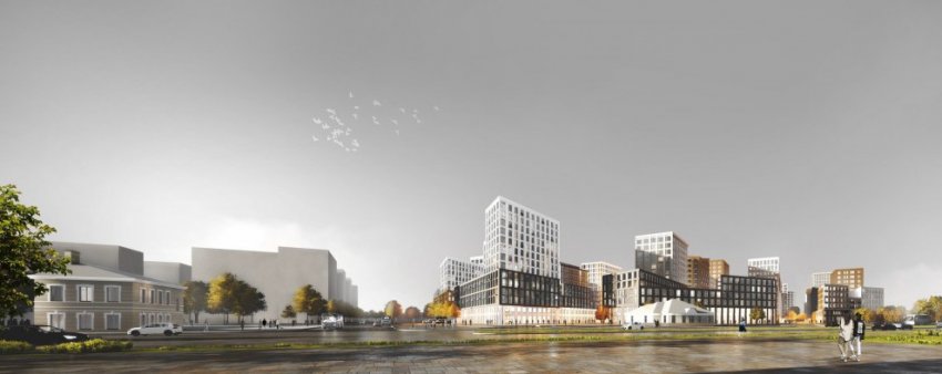 Представлены картинки жилого квартала, который собираются построить на месте товарной станции Витебского вокзала на Лиговском проспекте, 240. Проектом предполагается удлинить Камчатскую улицу.
