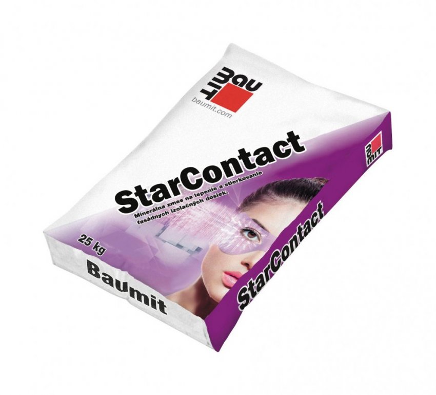 Подчеркнем, состав Baumit StarContact является универсальным, то есть подходит одновременно для приклеивания утеплителя и создания базового армирующего слоя, он имеет самые высокие показатели по долговечности, прочности, трещиностойкости.