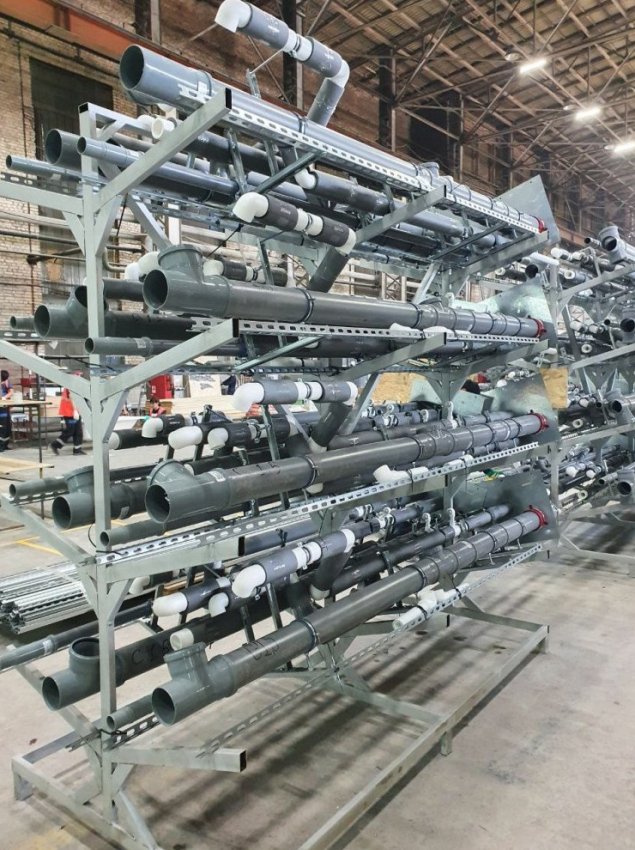 Шахт-модуль — это инженерно-модульный блок, который включает в себя стояки ХВС, ГВС и канализации из полипропиленовых труб, собранные на облегченном металлическом каркасе. Во время монтажа происходит спаивание prefab модулей верхнего и нижнего этажа, заливка отверстий, подключение модуля к СТМ и конечную опрессовку.
