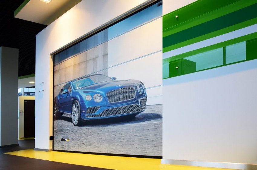 - Многообразие вариантов исполнения. «АЛЮТЕХ» предлагает различные материалы для заполнения створок — алюминиевые и роллетные профили, сэндвич-панели. Кроме того, существует множество вариаций окрашивания ворот.